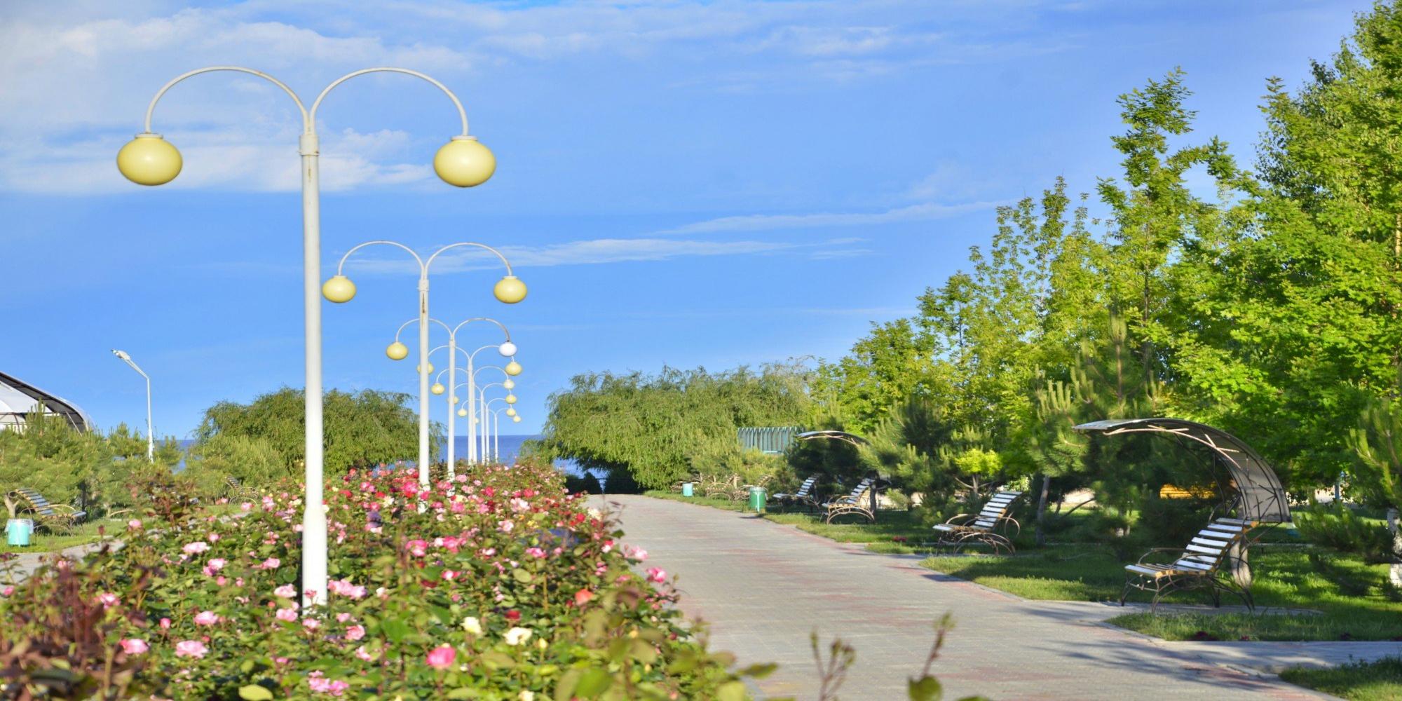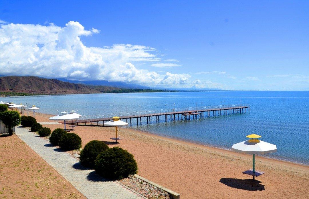 Из окон большинства номеров открывается прекрасный вид на озеро Иссык-Куль. Пансионат имеет собственный великолепный пляж с песчаным берегом и пирсом, который оборудован удобными лестницами для спуска в воду.