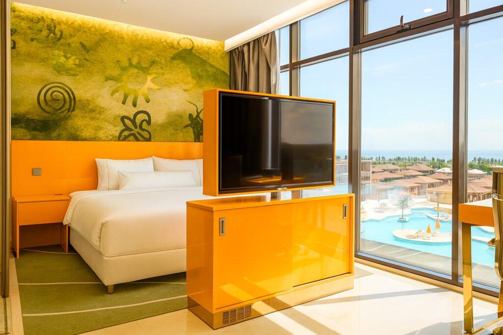 Роскошные номера: Наши номера совмещают в себе элегантный дизайн, комфорт и современные удобства. Вы будете окружены уютом и гостеприимством с первого момента вашего прибытия.