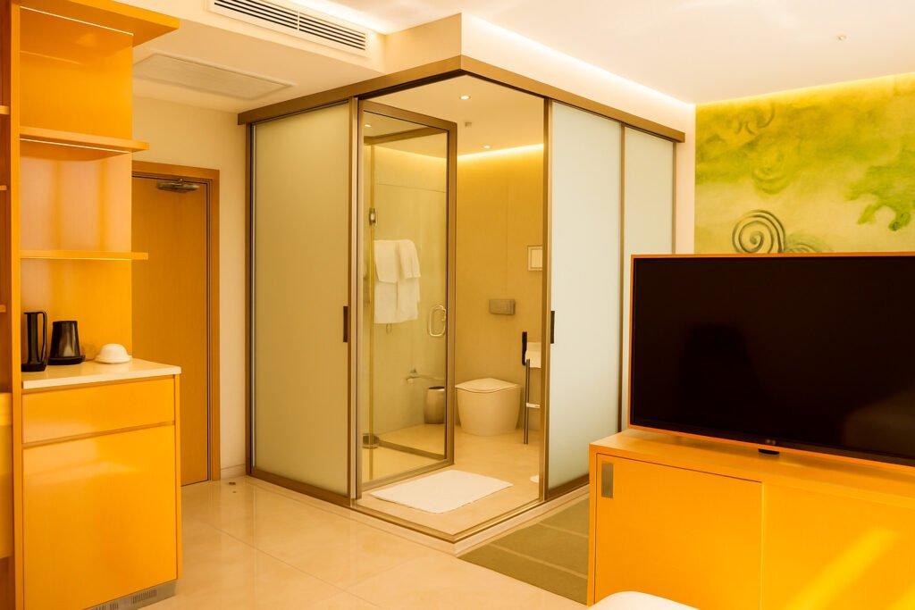 Номер сочетает комфорт и практичность, создавая атмосферу лёгкого отдыха у Иссык-Куля.