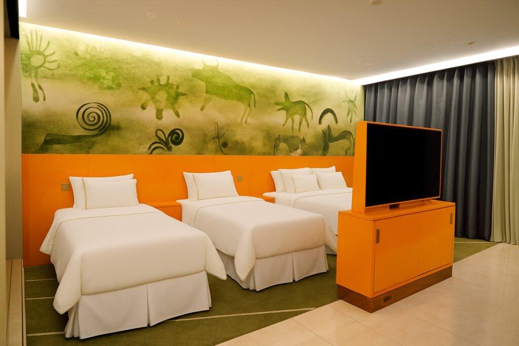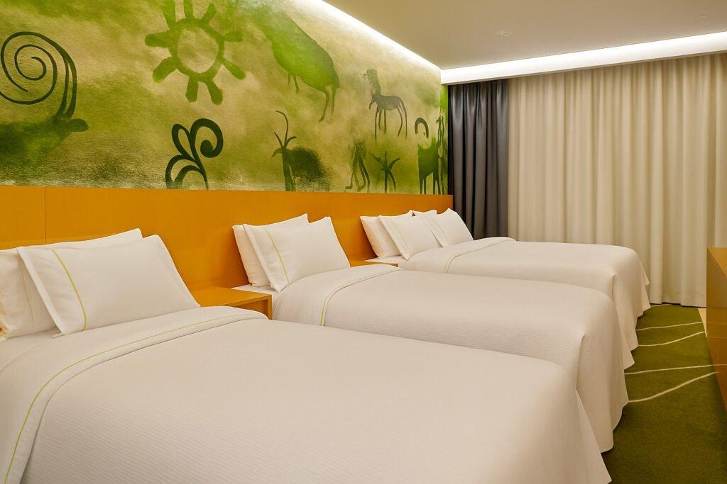 родители отдыхают на просторной кровати King-size, а детям уютно в собственных спальных местах. Планировка номера оставляет место для игр и тихих вечерних чтений, а тёплый свет и виды на озеро создают ощущение домашнего уюта.
