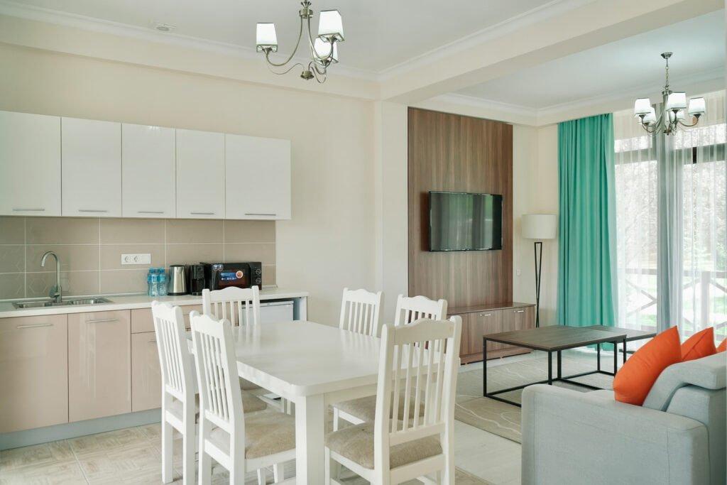 • светлый зал с кухней-студией для семейных ужинов и встреч;