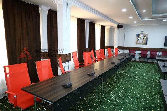 Бизнес-клиентам гостиничный конгресс-центр готов предоставить конференц-залы «Европа» и «Азия», на 200 и 50 мест, оснащенные аудиовизуальной техникой и системой кондиционирования, организацию торжеств и услуги бизнес-центра.