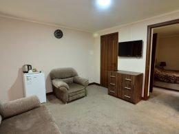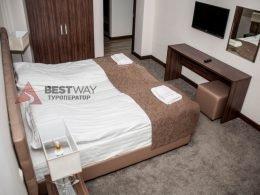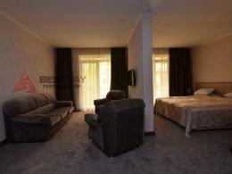 Территория комплекса утопает в зелени и цветах. Гостиничный фонд представлен номерами классов «эконом», «стандарт» и «люкс» в двухэтажных корпусах, одноэтажными домиками в глубине парковой зоны и VIP-коттеджами на первой береговой линии. В каждом номере - свежий ремонт и современная мебель, личные удобства, спутниковое телевидение.