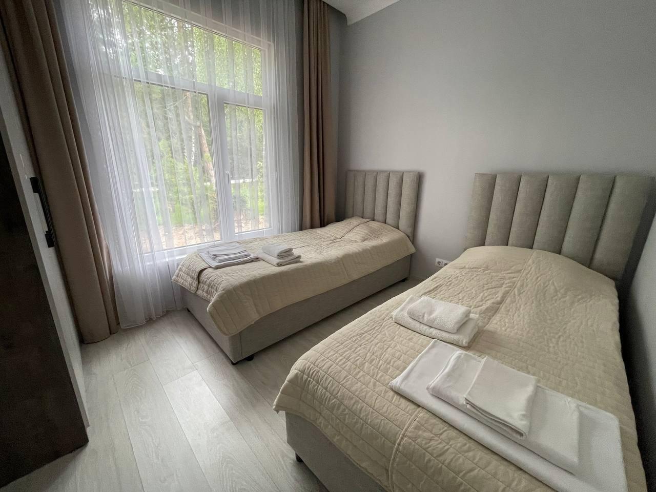 Пансионат принимает отдыхающих в пяти двухэтажных корпусах, каждый из которых рассчитан на 60 человек. В его границах построена теплица для выращивания овощей, фрукты, попадающие на стол гостей в столовой пансионата, собраны в собственном фруктовом саду. Корпуса дома отдыха находятся в зеленой парковой зоне, в тени елочек, берез и кипарисов, на газонах и вдоль пешеходных дорожек - цветники и розовые клумбы.