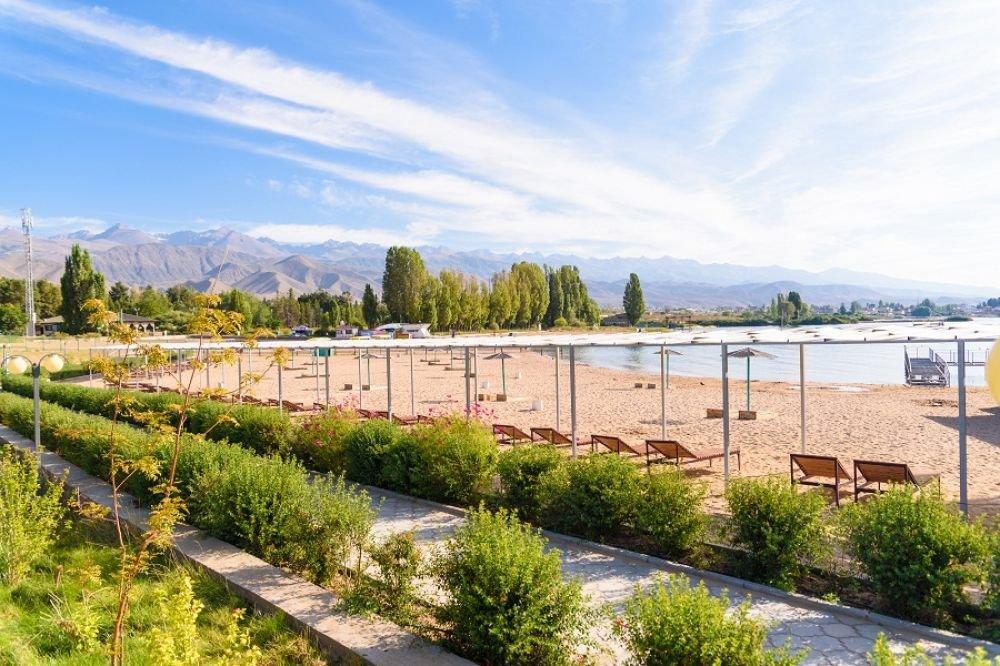 Северное побережье озера Иссык-Куль, курортная зона Кара-Ой (Долинка), 5 километров от города Чолпон-Ата.