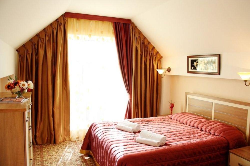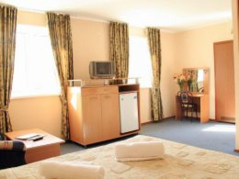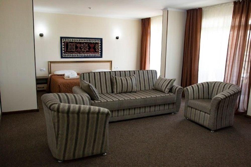 Двухкомнатный номер, состоящий из спальни с двуспальной кроватью и гостиной комнаты, где расположена односпальная кровать. Номер с балконом, окна выходят в сторону озера.