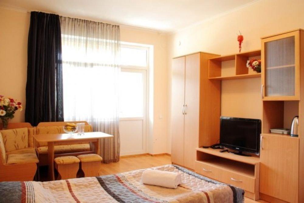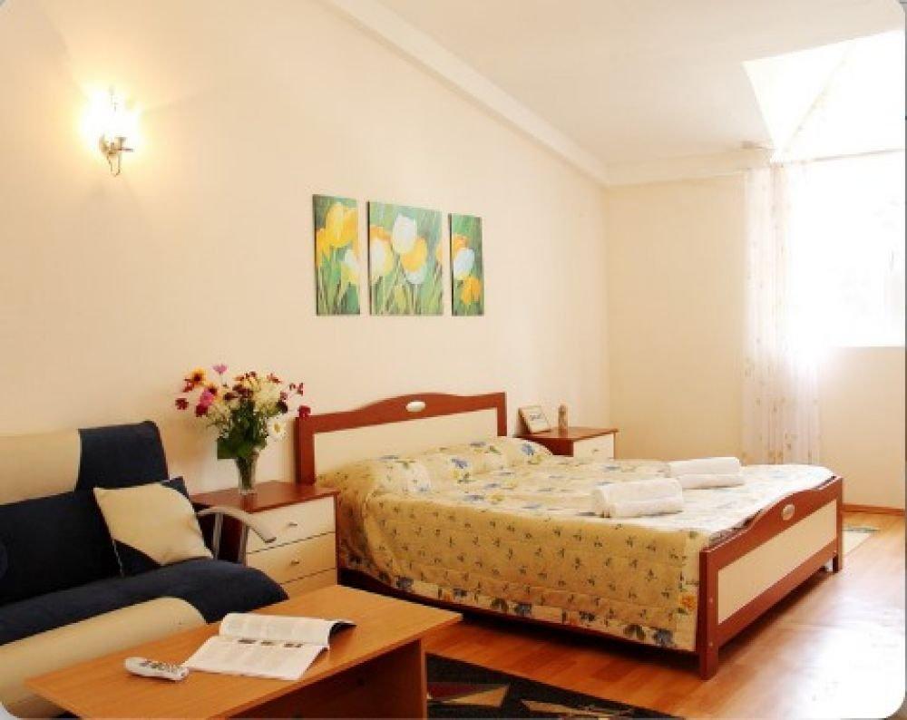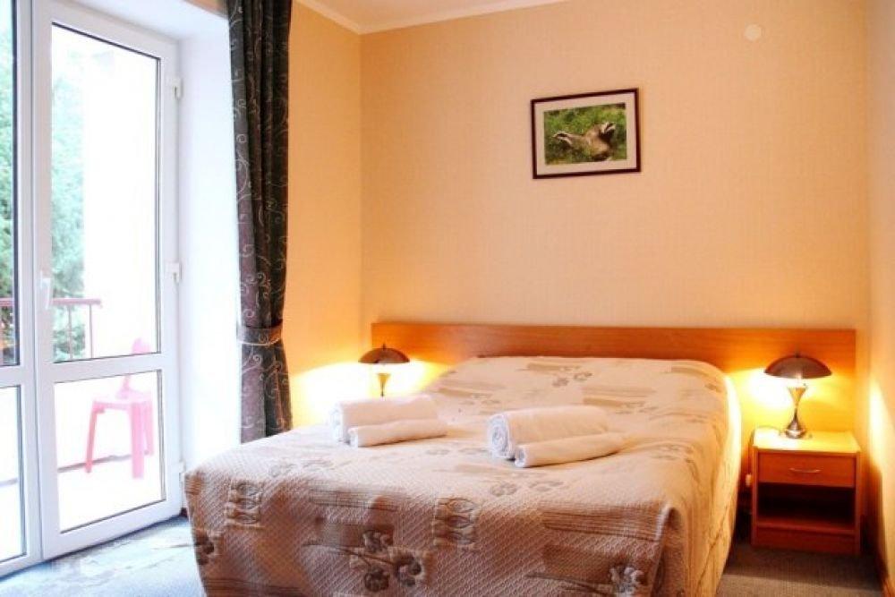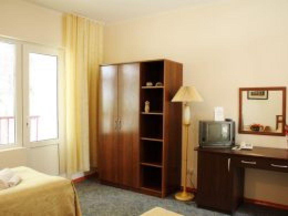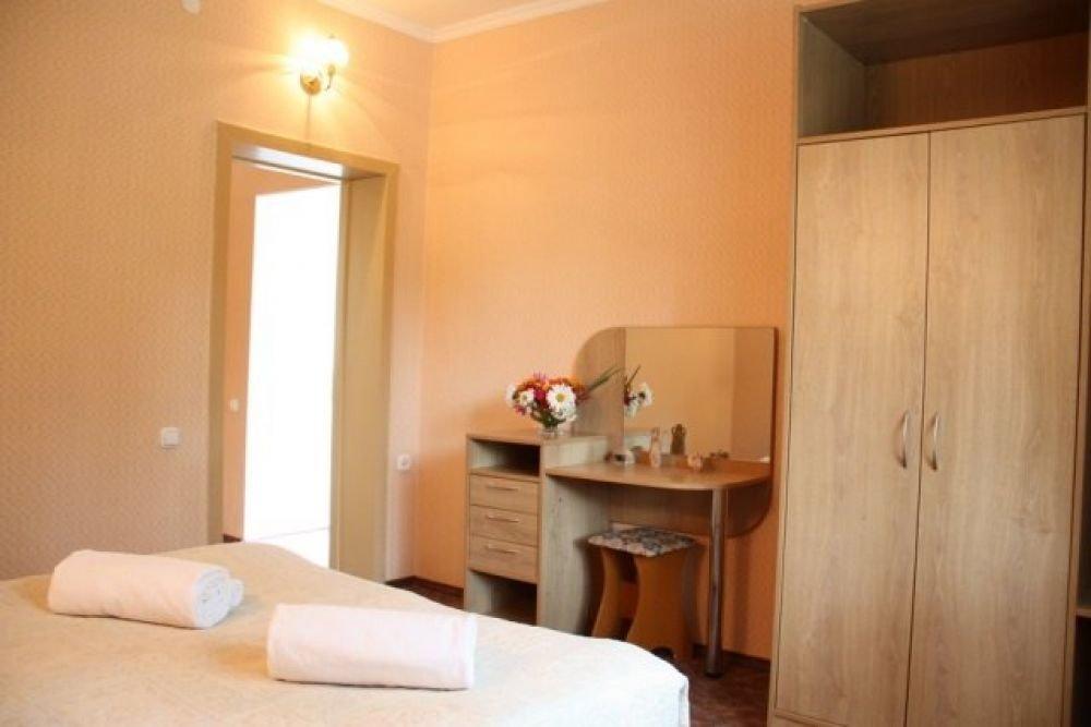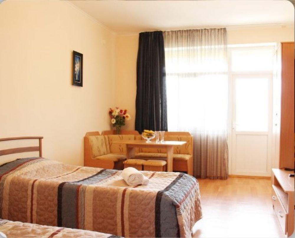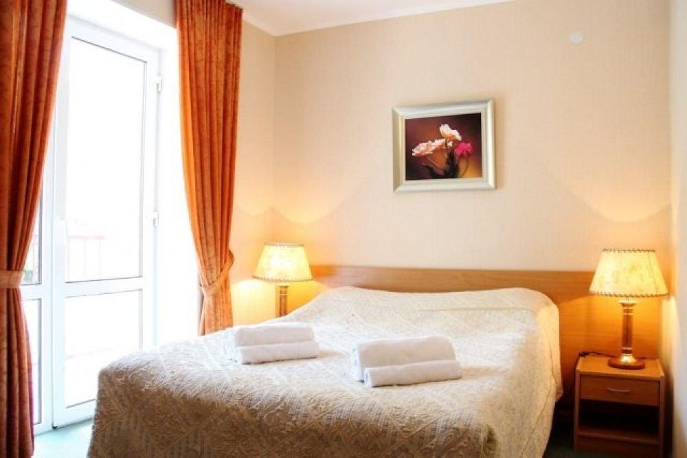 Однокомнатный номер с одной двуспальной кроватью или с двумя раздельными. Номер без балкона, окна выходят на сад.