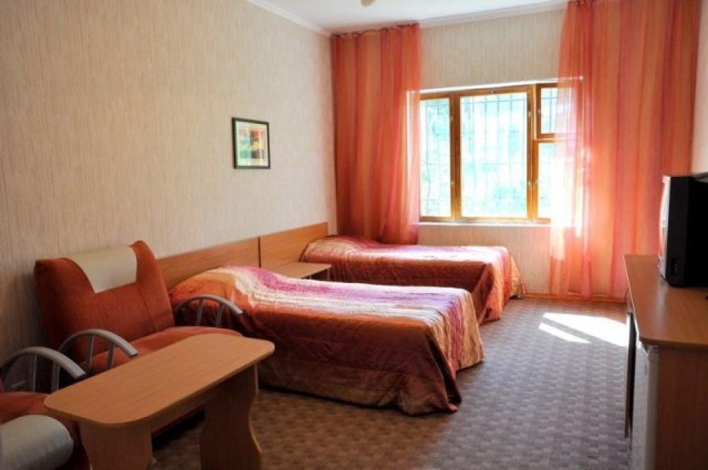 Однокомнатные двухместные номера с раздельными кроватями и мягкой мебелью.