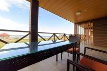 «Suit» - это большие однокомнатные двухместные номера с раздельными кроватями и с террасой с видом на озеро или видом на сад. В комнате имеется отдельная спальная зона и отдельная гостиная зона с мягкой мебелью. На террасе имеются плетеные кресла со столиком.