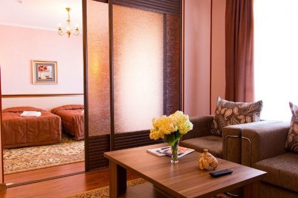 Двухкомнатные четырехместные номера с раздельными кроватями и мягкой мебелью.