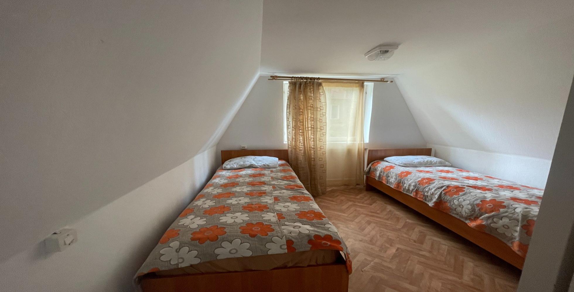 Две спальные комнаты: с кроватью King-size и двумя раздельными во второй комнате. Кухня, гостиная.