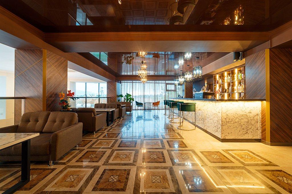 1 ресторан и еще 11 сезонных кафе и ресторанов (работают только летом), 2 бара 2 конференц-зала, бизнес-центр