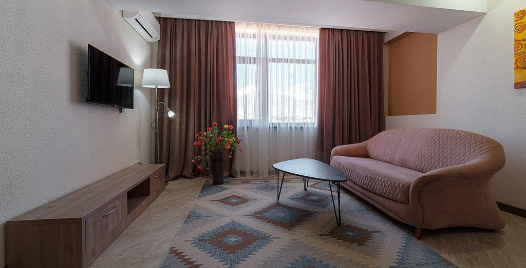 Номера отеля отвечают международным стандартам и оформлены в едином классическом стиле. Преобладающая часть номеров имеет персональный балкон или террасу с плетеной мебелью.