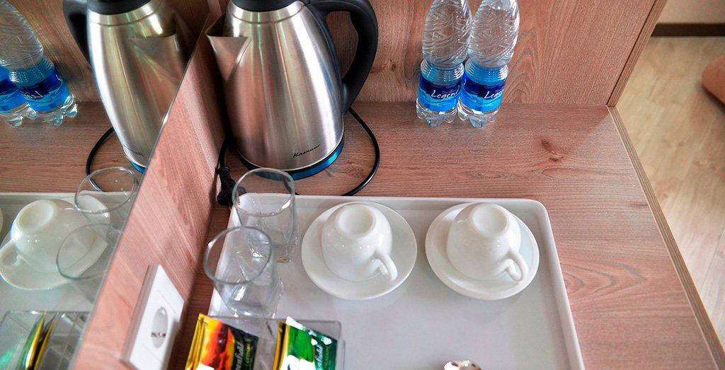санузел и ванная комната спутниковое телевидение телефон чайник и посуда для чаепития фен банные полотенца щетка для одежды, салфетка для обуви, коврик для пляжа, набор для гигиены, зонтик, внутренние и пляжные полотенца