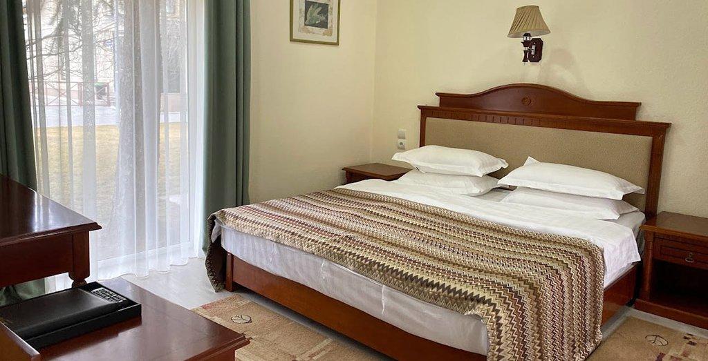 В стоимость входит: проживание, 3-х разовое питание, 3 процедуры в Оздоровительном центре (электролечение и солевая комната и ингаляции, при заезде не менее чем на трое суток, всего 3 процедуры), посещение крытого бассейна, Wi-Fi.